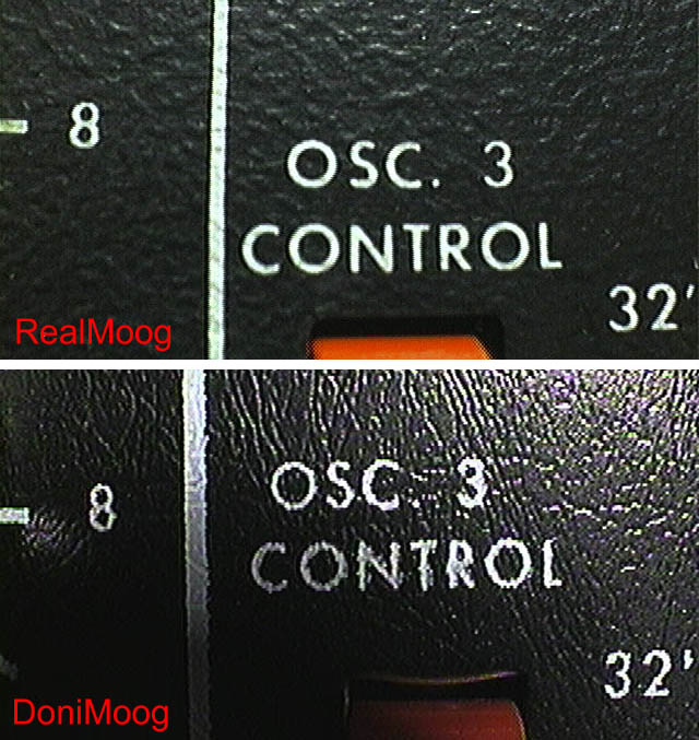 The silk screened lettering had far poorer quality edges and the lines looked much worse than a real Moog.